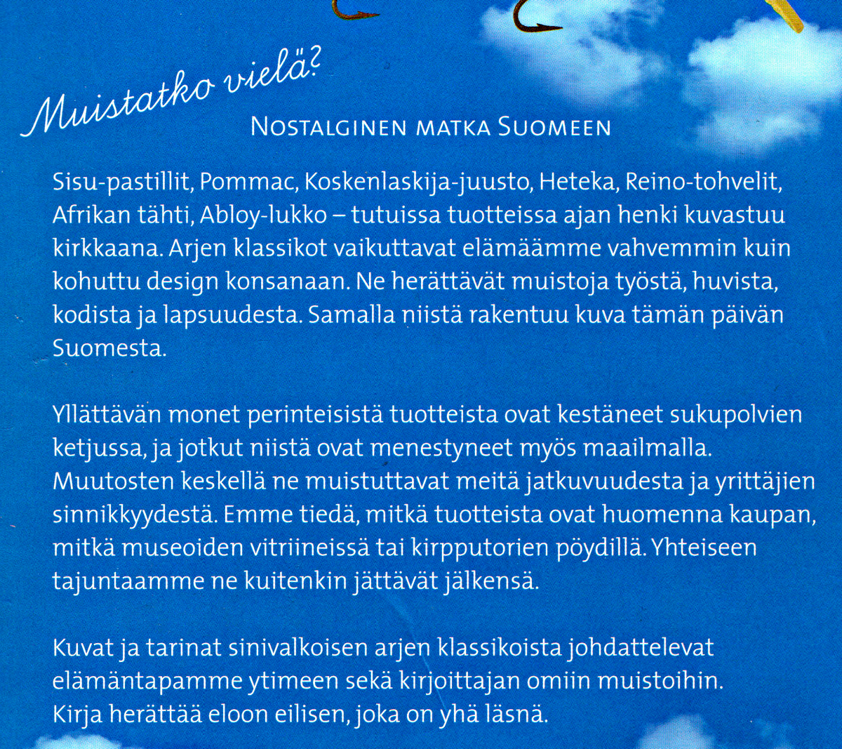 Muistojen markkinoilla – sinivalkoisen arjen klassikot / Marketplace of Memories – Everyday Finnish Classics, 2004